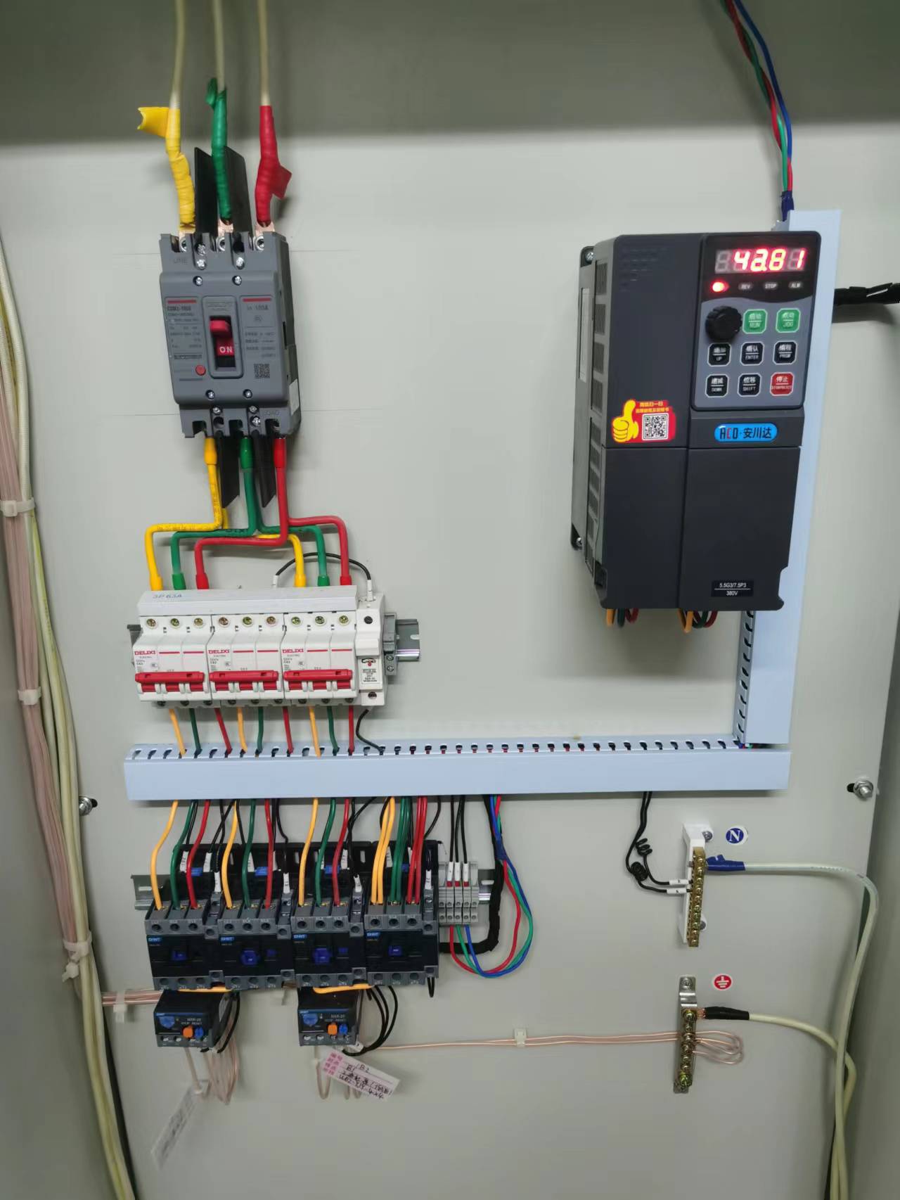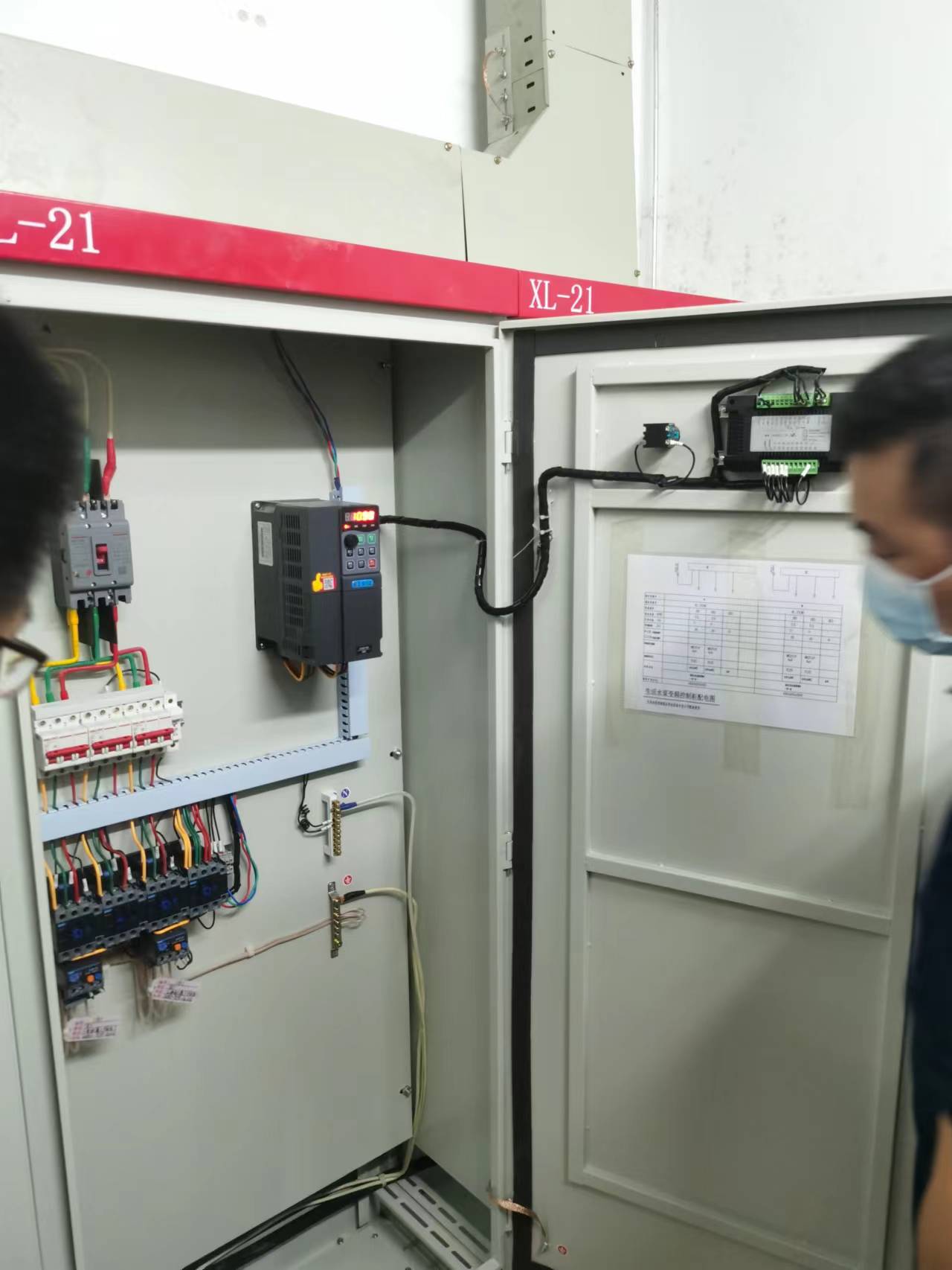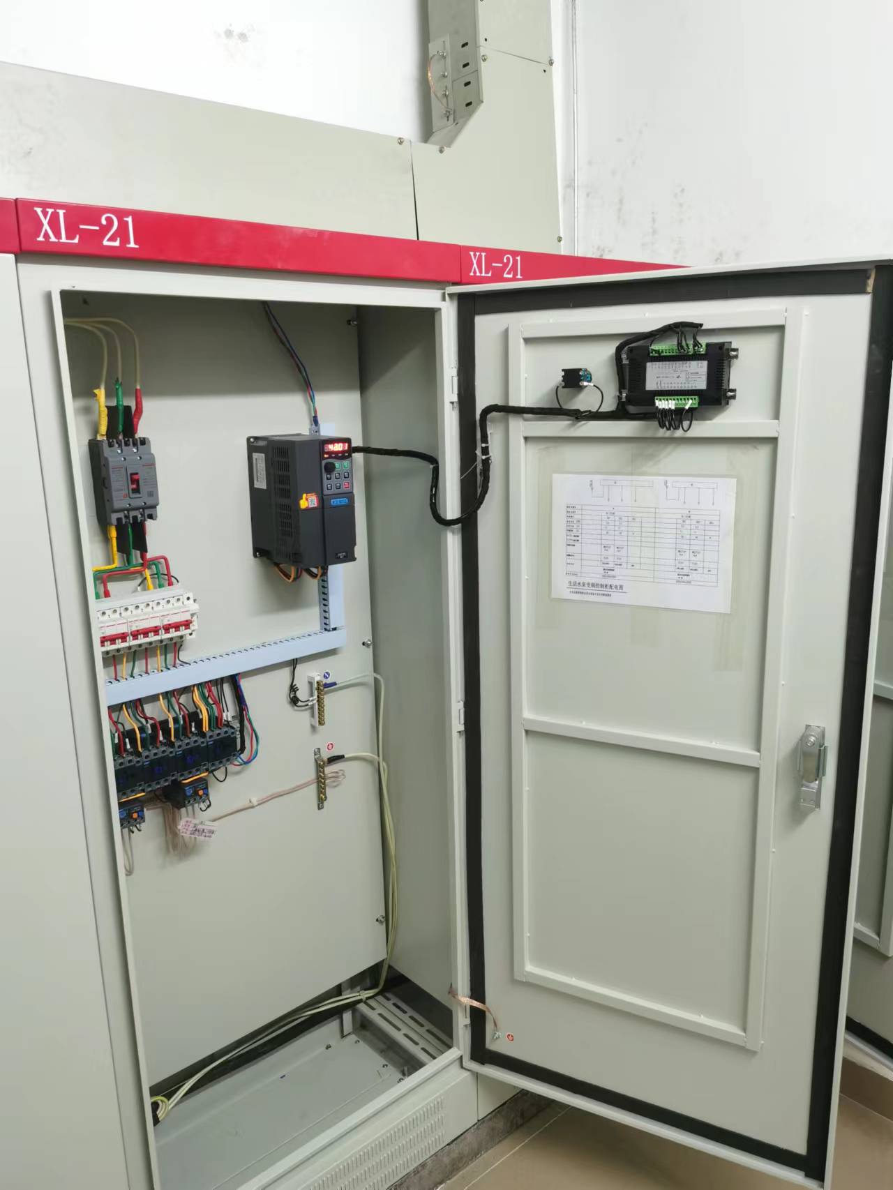 兩臺控制箱分別配備了一臺安川達5.5KW變頻器和4寸hy920恒壓供水控制器,實現一拖二恒壓供水。