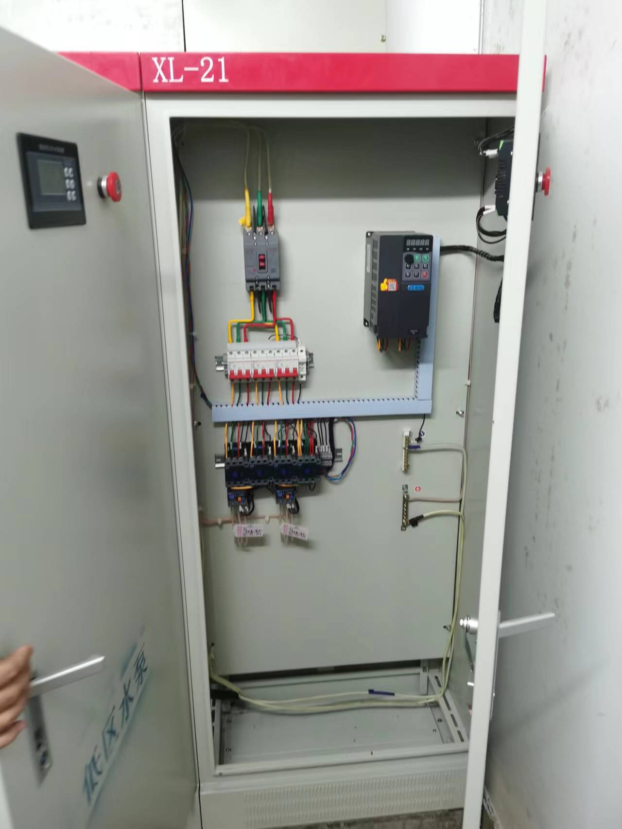 該現場為新建15層公寓,地下2層,泵房位于地下2樓,配備了4臺5.5KW水泵。低區為3~9層供水,配兩臺5.5KW水泵;高區為10~15層供水,配備兩臺更高揚程的5.5KW 泵組。